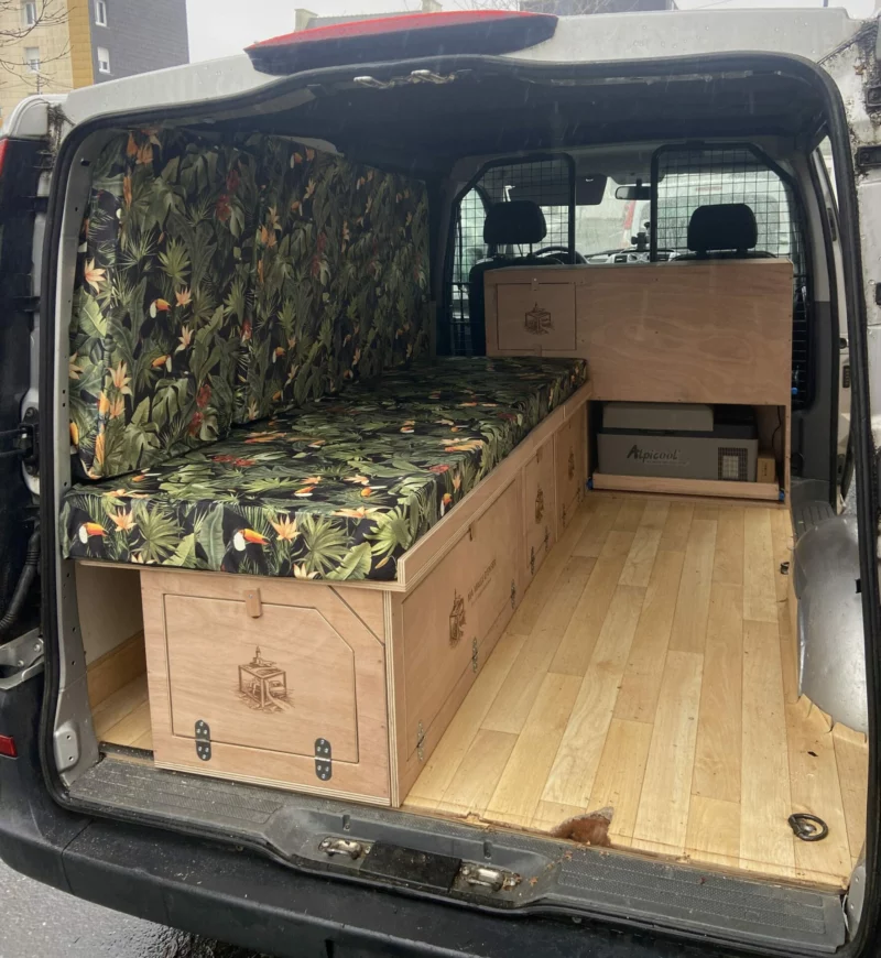Contrairement à un aménagement fixe, ce lit peigne se monte et se démonte facilement, sans impacter l’usage quotidien du véhicule.
